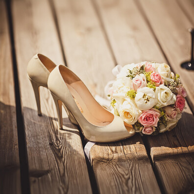 - Alternativ: Jeweils ein Schuh von Braut