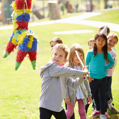 Das Piñata-Spiel ist ein beliebtes Partyspiel für Kinder, bei dem eine bunte Figur aus Pappmaché, gefüllt mit Süßigkeiten, Spielzeug oder Konfetti, aufgehängt wird. Die Kinder schlagen mit einem Stock auf die Piñata ein, bis sie aufplatzt und die Füllung herausfällt – ein Spaß, der Spannung und Freude garantiert.